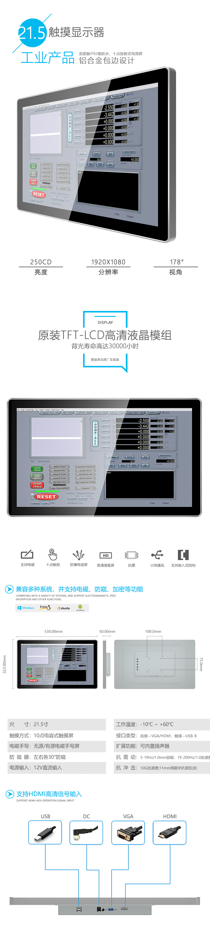 1个USB/B触摸屏通讯输入接口 |